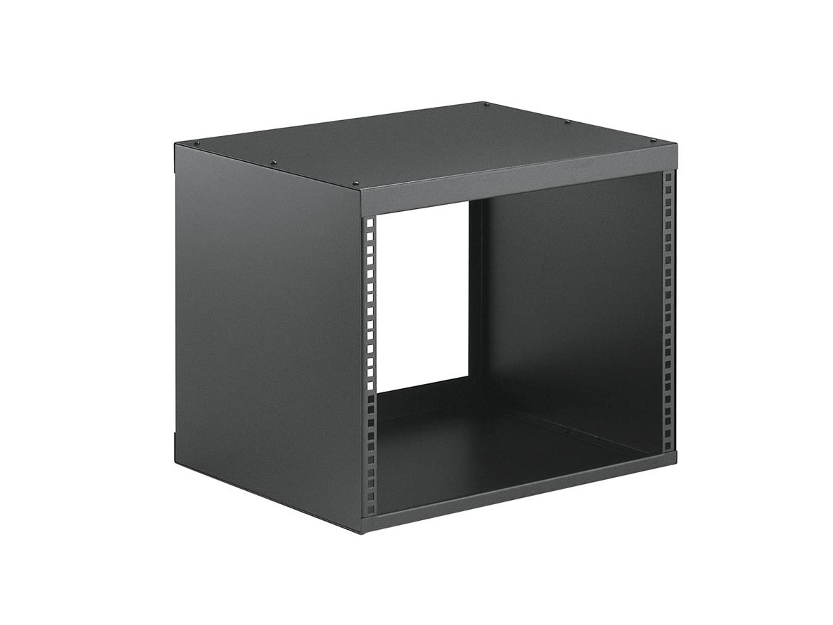 Sturdy steel 19" rack with rack rails on the front and back side. 8 spaces. Appr. 430 mm deep.