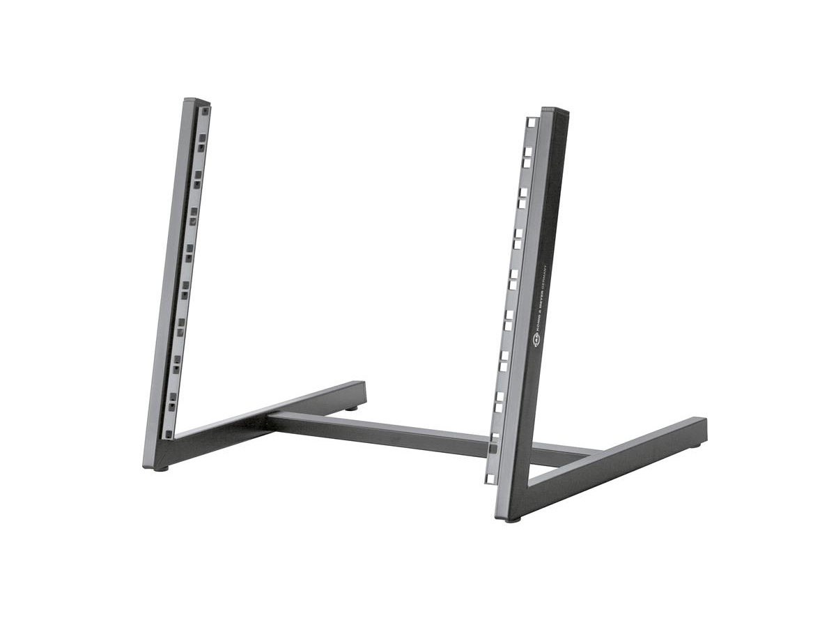19" standard 8 unit-rack desk stand. Sturdy U-profile with steel rack rails. Comes with 16 cage nuts and screws.