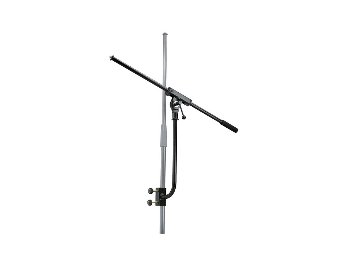 Attaches to stands with diameter from 15 to 30 mm. With prismatic clamp connector. Comes complete with adjustable and swiveling boom arm with 3/8" thread.