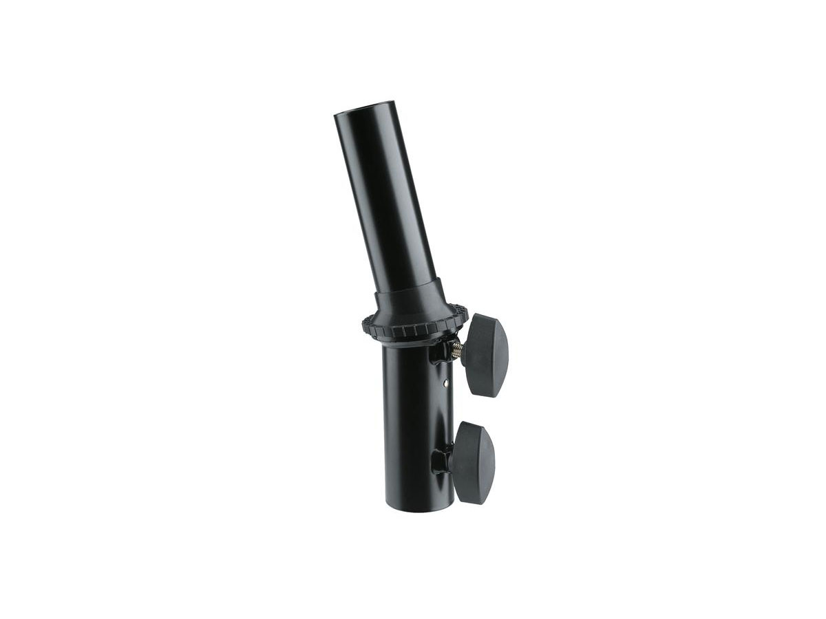 For speaker stands with tube diameter of 35 mm. Angle adjustable to 15°. Secured by locking screw.