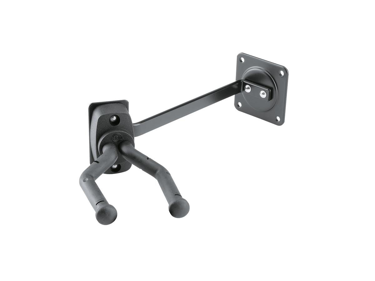 The worldwide tried and tested Guitar wall mount 16280 comes with an attractive wall mount, which is made out of sturdy steel. Comfortable handling due to the 30° angle access. The guitars can be placed close to each other and do not take up a lot of space. Double-sided use. The stable guitar mount has rubberized support arms and protects the instruments from scratches and damage. The movable arms automatically adjust to the guitar’s neck providing ultimate safekeeping. The wall mount is excellent for guitars with asymmetrical necks.