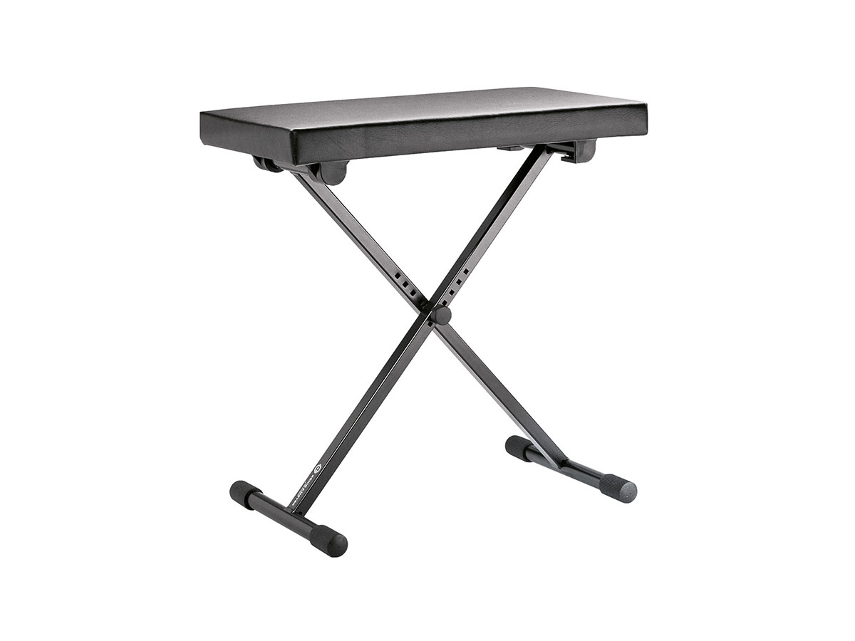 Comfortable keyboard bench with high quality black imitation leather seat 540 x 300 mm, height-adjustable, wobble-free design, collapsible for easy transport.