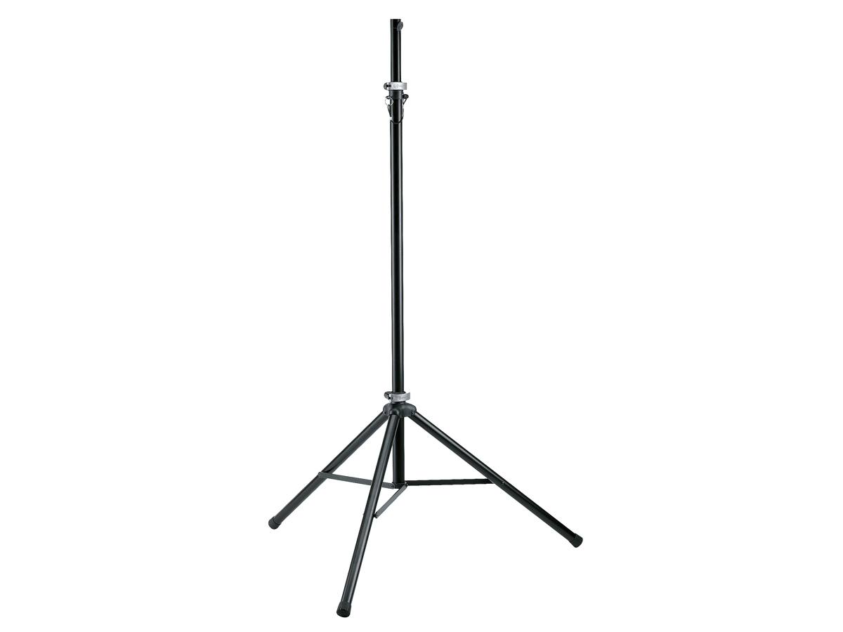 Easy to transport, lightweight aluminum lighting stand, extension rod with adapter to take a TV pin (inner extension tube diameter 28 mm). Stable tripod construction. Height adjustable with handy clamping levers and additional safety pin.