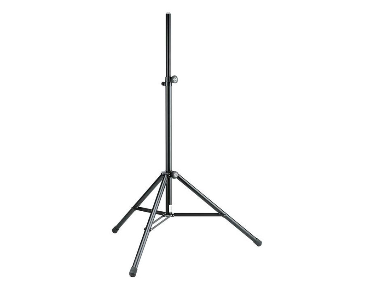 Worldwide accepted: the speaker stand 214/6 ‒ robust and sturdy. All clamps are high quality zinc die-cast. The leg construction and large fixed foot end caps enhance safety and stability. Other features are the pull-out guard for the extension tube, the integral anti-shock component and comfortable height adjustment with spring-loaded bolt and locking screw. Comes with a mounting aid on the extension rod.