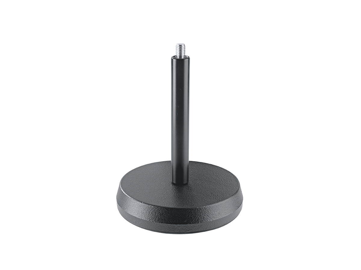 Sound-absorbing cast-iron base with black powder-coated screw-in rod, 3/8" thread.