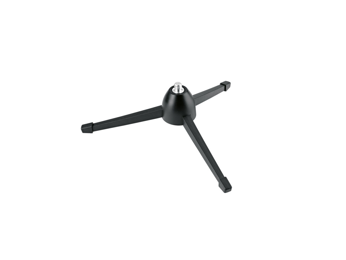 Inexpensive, handy table microphone stand for professional use. Sturdy plastic base with collapsible light-weight plastic legs and 3/8" thread.