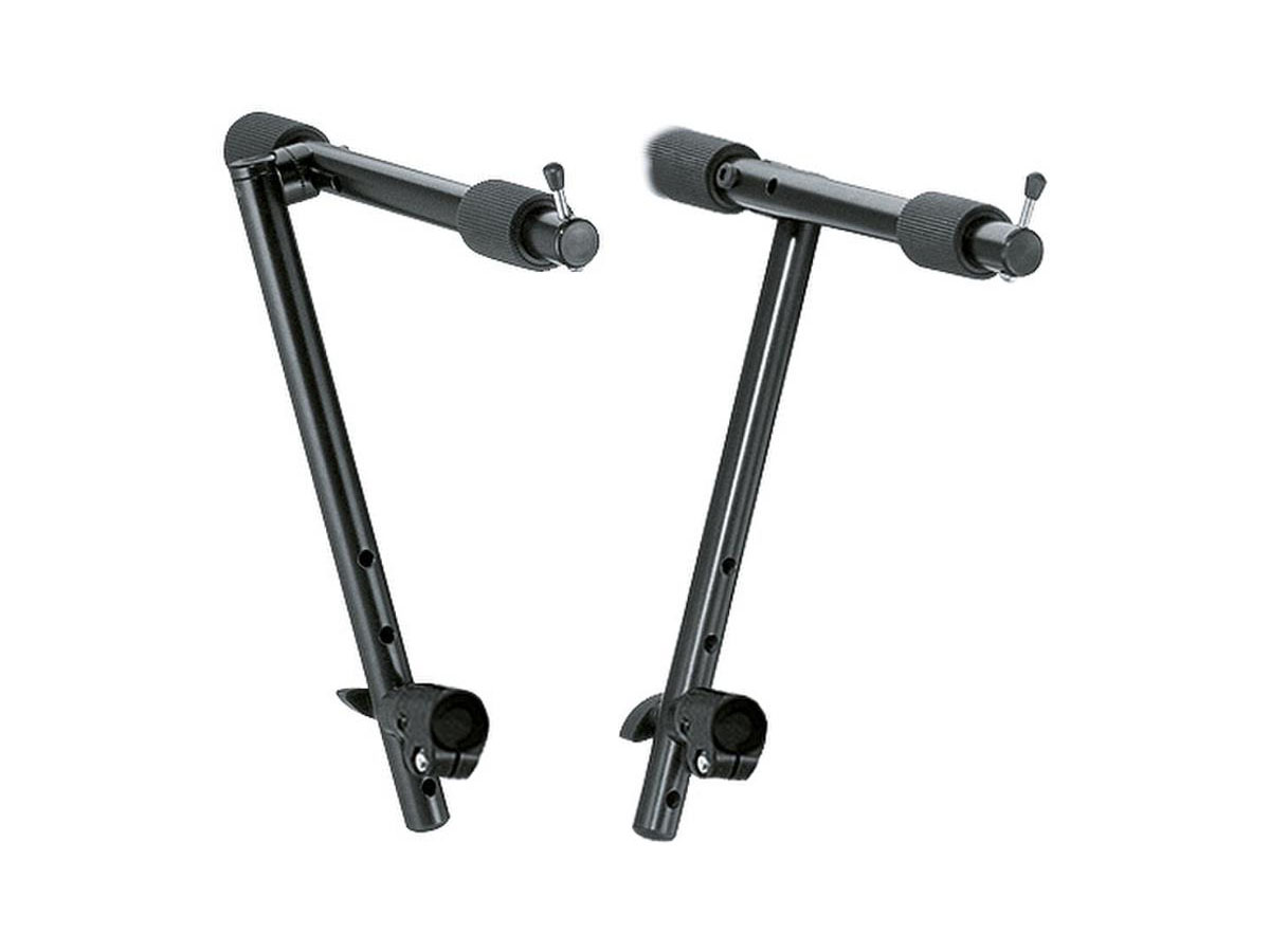 Optional stacker for 18930 and 18990, fully adjustable in height, depth and tilt to accomodate various types of instruments. All-metal construction, black powder-coated. Big non-marring pads to protect the keyboard. The new all-metal teeth locking devices ensure tight non-slip settings at any position.