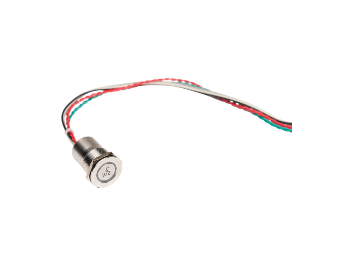 The Confidea F-Box_DL_PBTN is a delegate/chairman capacitive touch button with a request-to-speak symbol, LED indication and 1.2 m cable for an easy connection to the Confidea F-Box solution. Simply connect the cable to the Confidea F-Box for a clean integrated solution.
