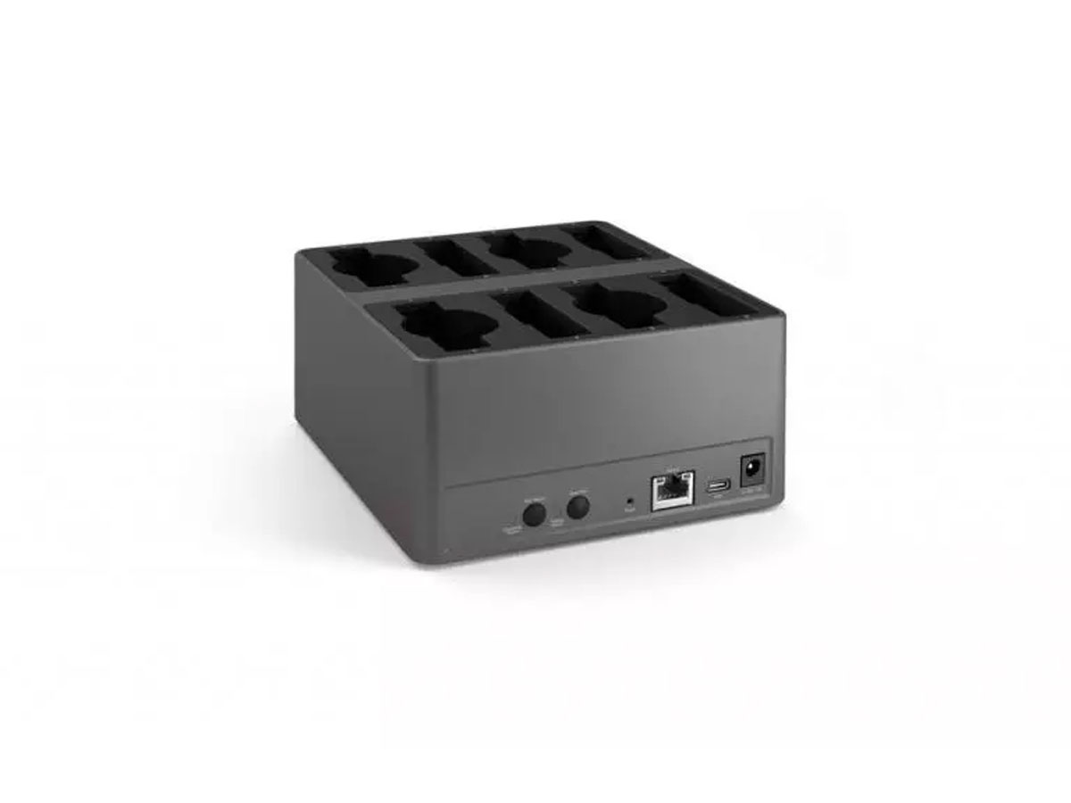 The Unite CDD-8/4 cockpit desktop charger is a multifunctional device used to charge the batteries integrated in the Unite transmitters and receivers as well as to store and transmit the pairing information (channel name and group ID) from the transmitter to the receiver.