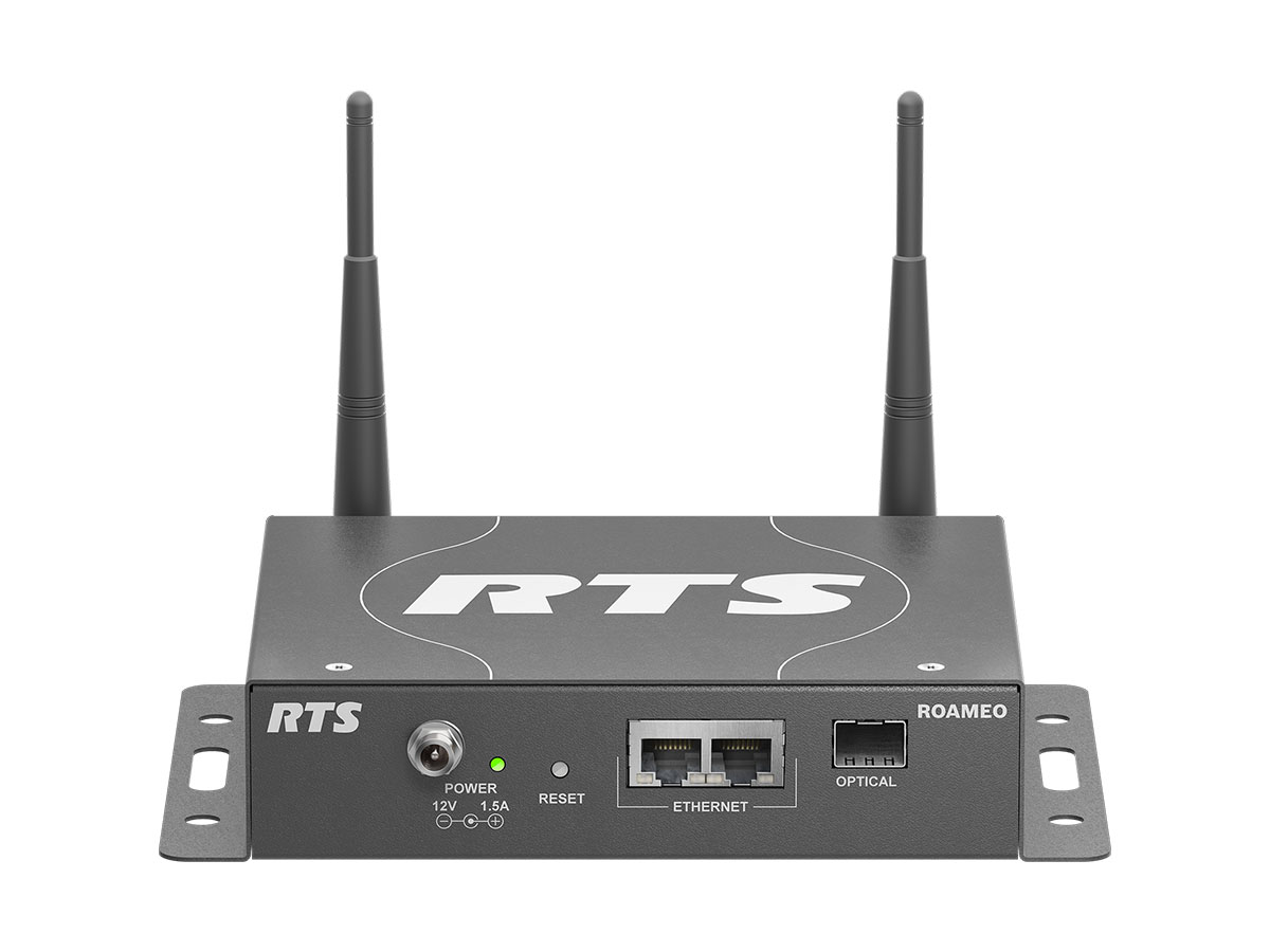 ROAMEO DECT based access point. Converts OMNEO IP keypanel data and audio signals into DECT. Works with G.726 or G.722 codecs. Flush or pole mount.