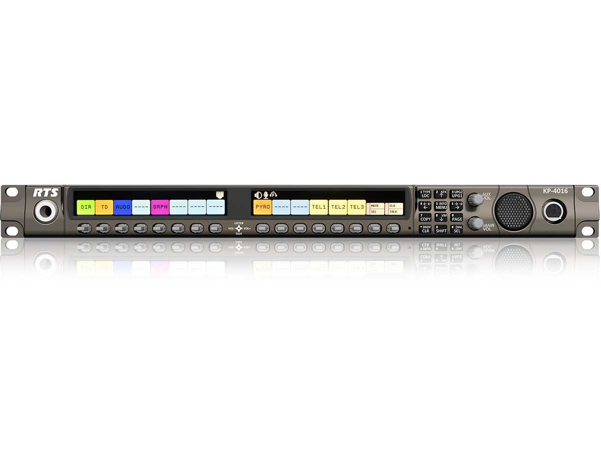 14 Position Key Panel with multidirectional talk/listen lever keys with level control. Key 15 is for Headset Mute/Mic Select .Key 16 is for CWW Reply / Clear. Menus and programming keypad, extended DSP Functions, 2 full HD colour displays, 2 channel OMNEO via RJ45 and fiber connection and standard analogue RTS matrix connection. Additional rear end Audio connections and GPIOs. Headset connector A5F. Optional fiber SFP modules and headset plug-in inlay A4F, A4M and A5M available. 1 RU 19". Expansion by EKP-4016 and . Support for RVON. PSU mounting bracket included. Uses OPTIONAL MCP-90X
