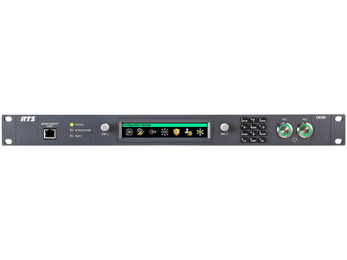The ODIN Digital Intercom is a highly scalable intercom system in a 1RU (Rack Unit) package. As your capacity needs to evolve, a single ODIN can grow from 16 ports to a maximum of 128 ports. A maximum of eight ODIN units can be interconnected via an optical Inter-Frame Link creating a single matrix with up to 1024 ports. The total number of licensed ports may be allocated freely to any port hardware type supported by the unit.
