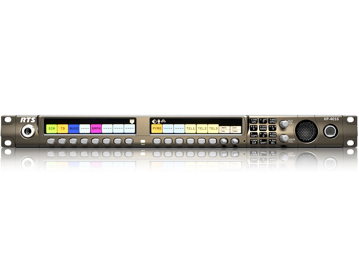 14 Position Key Panel with new Pushbutton functionality. Key 15 lever key for Mic Mute/Select. Key 16 lever key for CWW/Clear. Menus and programming keypad, extended DSP Functions, 2 full HD colour displays, 2 channel OMNEO via RJ45 and fiber connection and standard analogue RTS matrix connection. Additional rear end Audio connections and GPIOs. Headset connector A5F. Optional fiber SFP modules and headset plug-in inlay A4F, A4M and A5M available. 1 RU 19". Expansion by EKP-4016 . Support for RVON. PSU mounting bracket included. Uses OPTIONAL MCP-90X microphones.