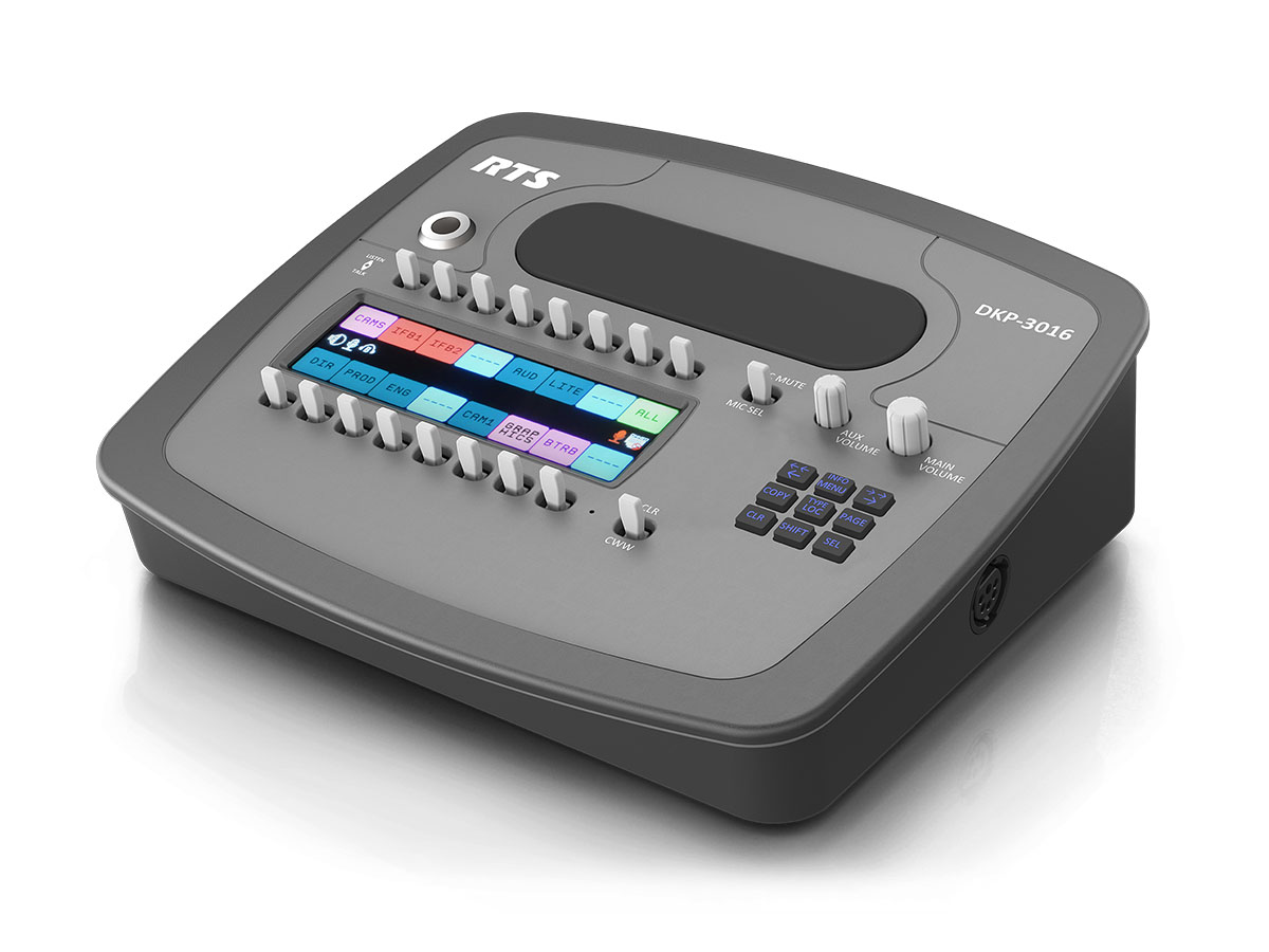 16 Position desktop Key Panel with dual-directional lever keys for talk/listen. Menus and programming keypad, extended DSP Functions, one full HD colour display; 2 channel OMNEO via one RJ45 connection and standard analogue RTS matrix connection. Two Headset connectors A5F and A4F. Locking mains lead. Support for RVON. Uses OPTIONAL MCP-90X microphones. KP3016 , KP3016A and DK3016 does not support the Audio upg & Control upg software packages