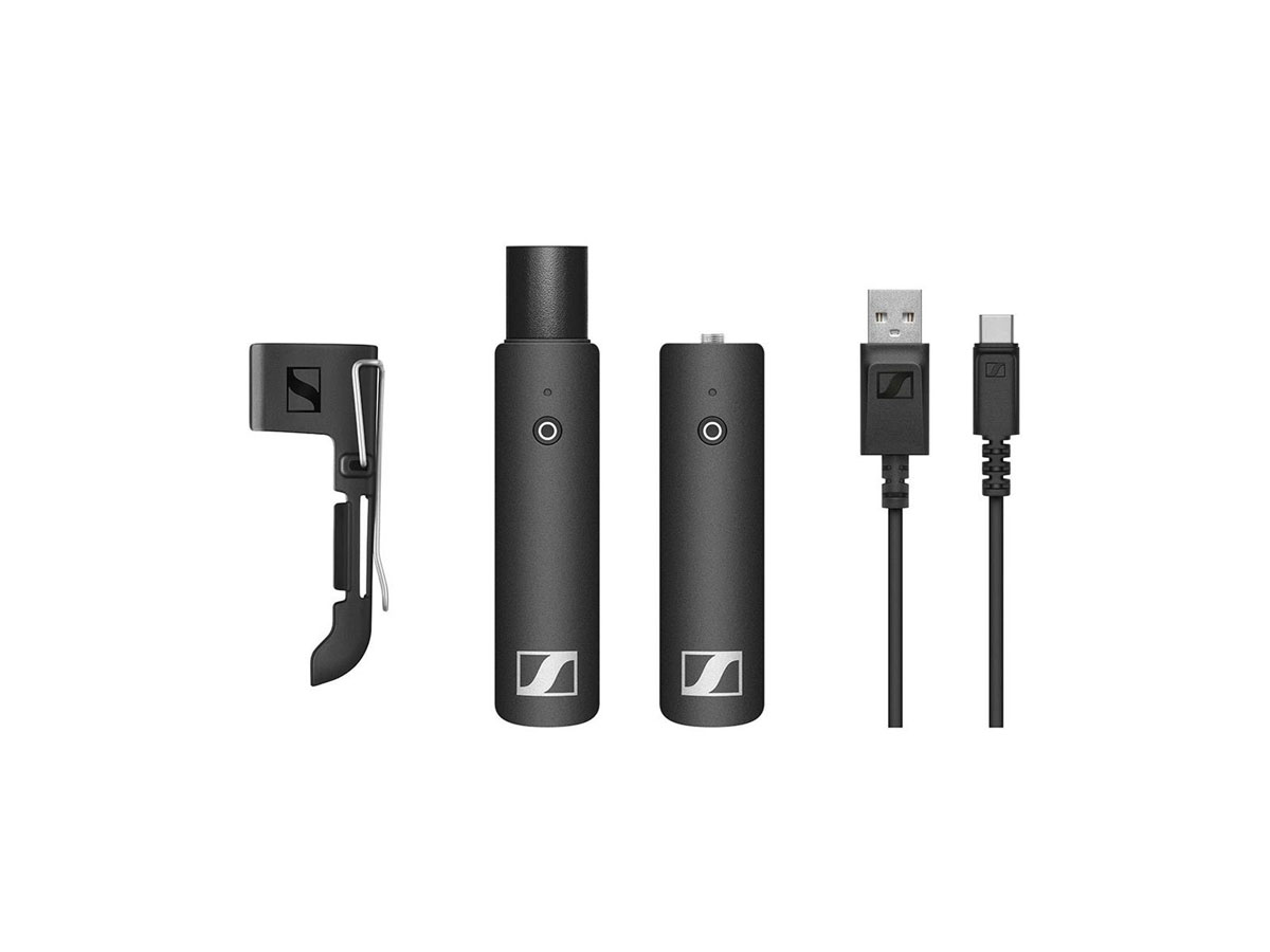 Presentation base set with (1) XSW-D MINI JACK TX (3,5mm), (1) XSW-D XLR MALE RX, (1) beltpack clip and (1) USB charging cable