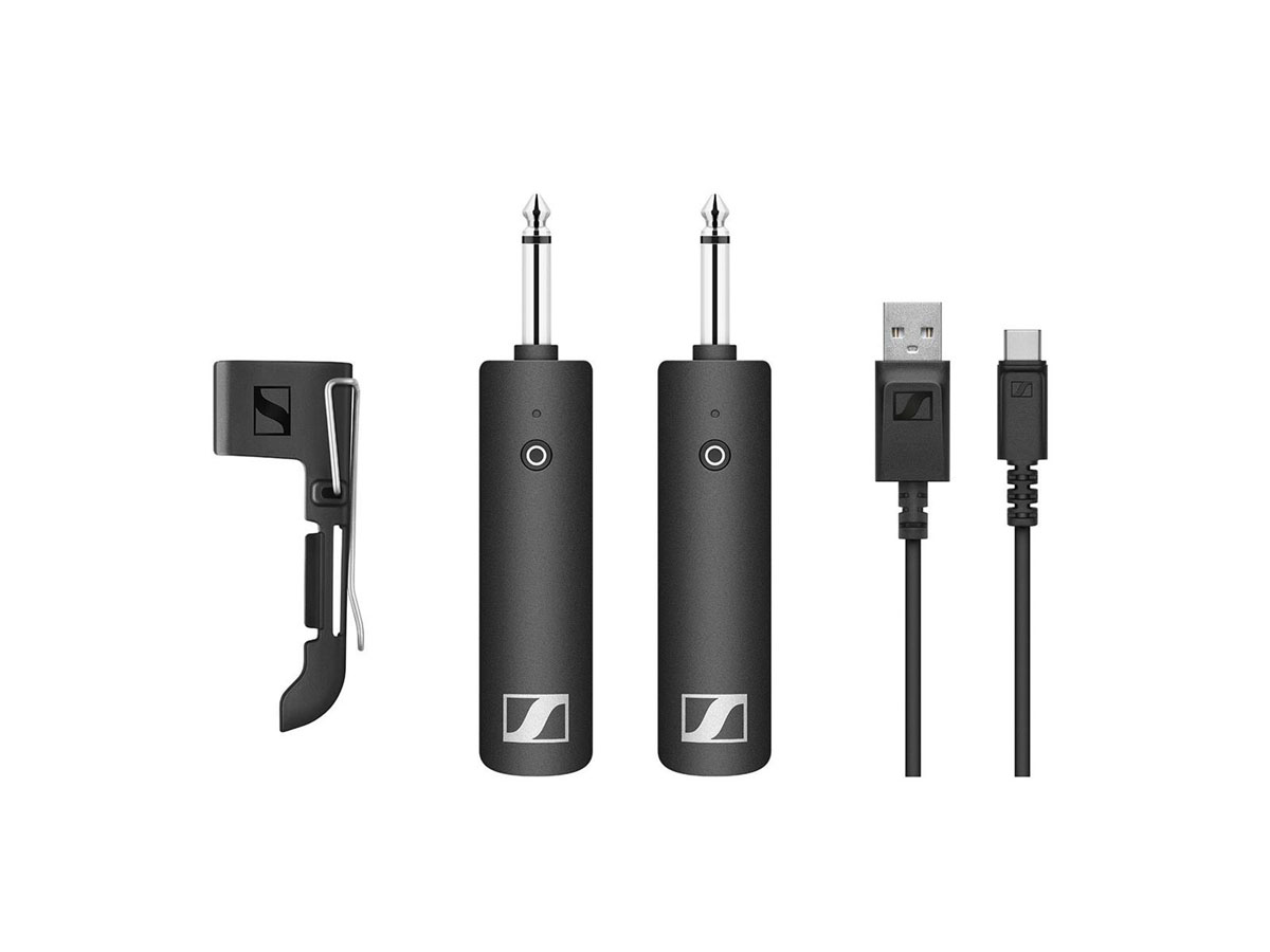 Instrument base set with (1) XSW-D INSTRUMENT TX (6,3mm, 1/4"), (1) XSW-D INSTRUMENT RX (6,3mm, 1/4"), (1) beltpack clip, (1) extension cable (6,3mm, 1/4") and (1) USB charging cable
