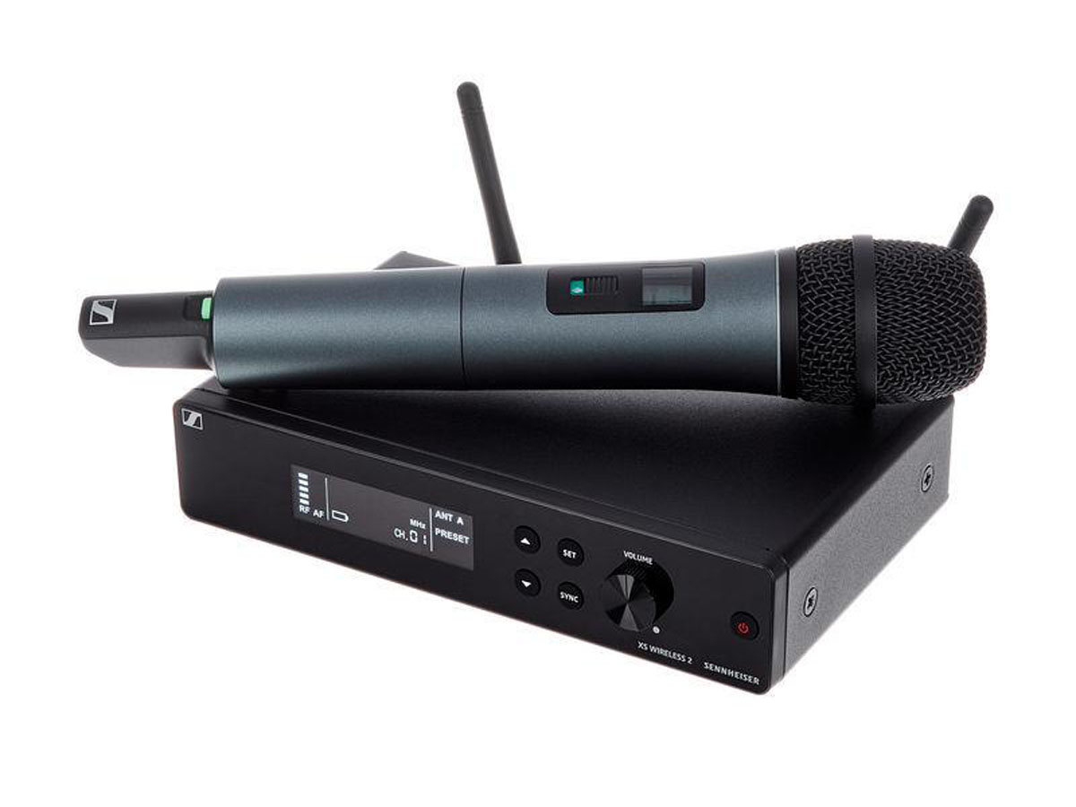 Raise your voice. High flexibility for those willing to go a step further. XS WIRELESS 2 grows with your demands by offering an intuitive LCD display for more manual options and 12 compatible channels in a stable UHF band, withstanding tougher live stage conditions. The XS WIRELESS 2 VOCAL SET is an easy to use all-in-one wireless system for singers and presenters featuring Sennheiser’s renowned evolution microphone capsule e835 (superior dynamic, cardioid) to perform under pressure. True Diversity receiver in a metal housing and rackmount kit included.