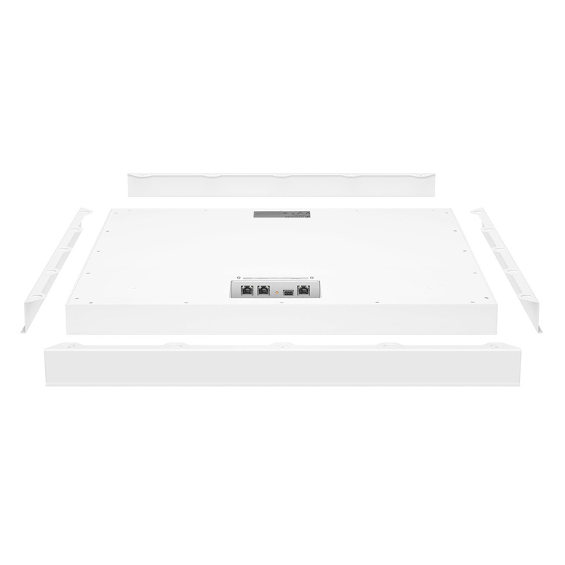 The SL CM EB 625 extension brackets (4 pcs) shall be used when the TeamConnect Ceiling Mic 2 is installed flush-mounted in a 2.05 feet ceiling grid. It extends the housing size from 590mm (1.94ft) to 617mm (2.02ft)