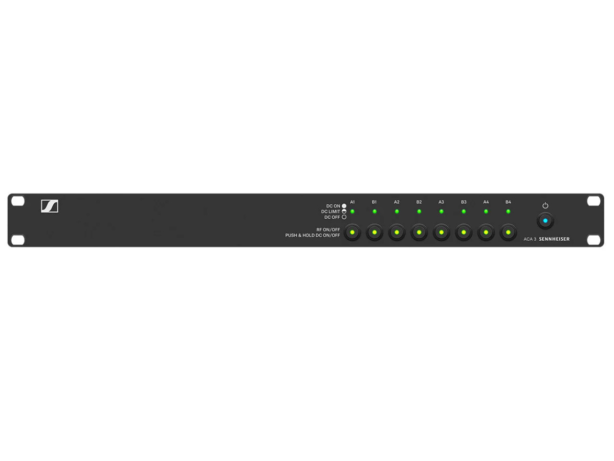 Sennheiser supports the use of distributed antenna systems with a range of high-specification antenna combiners to allow wireless microphone coverage over multiple rooms and large or complex sites. With the increasing demand for “zone” systems in various situations including large churches, broadcast installations, outdoor sporting events and reality TV shows, Sennheiser‘s engineers have used this expertise to develop the ACA 3, a compact and easy to deploy 2 x 4:1 antenna combiner compatible with all analog and digital Sennheiser wireless stationary receivers operating in the supported frequency range of 470 to 798 MHz.