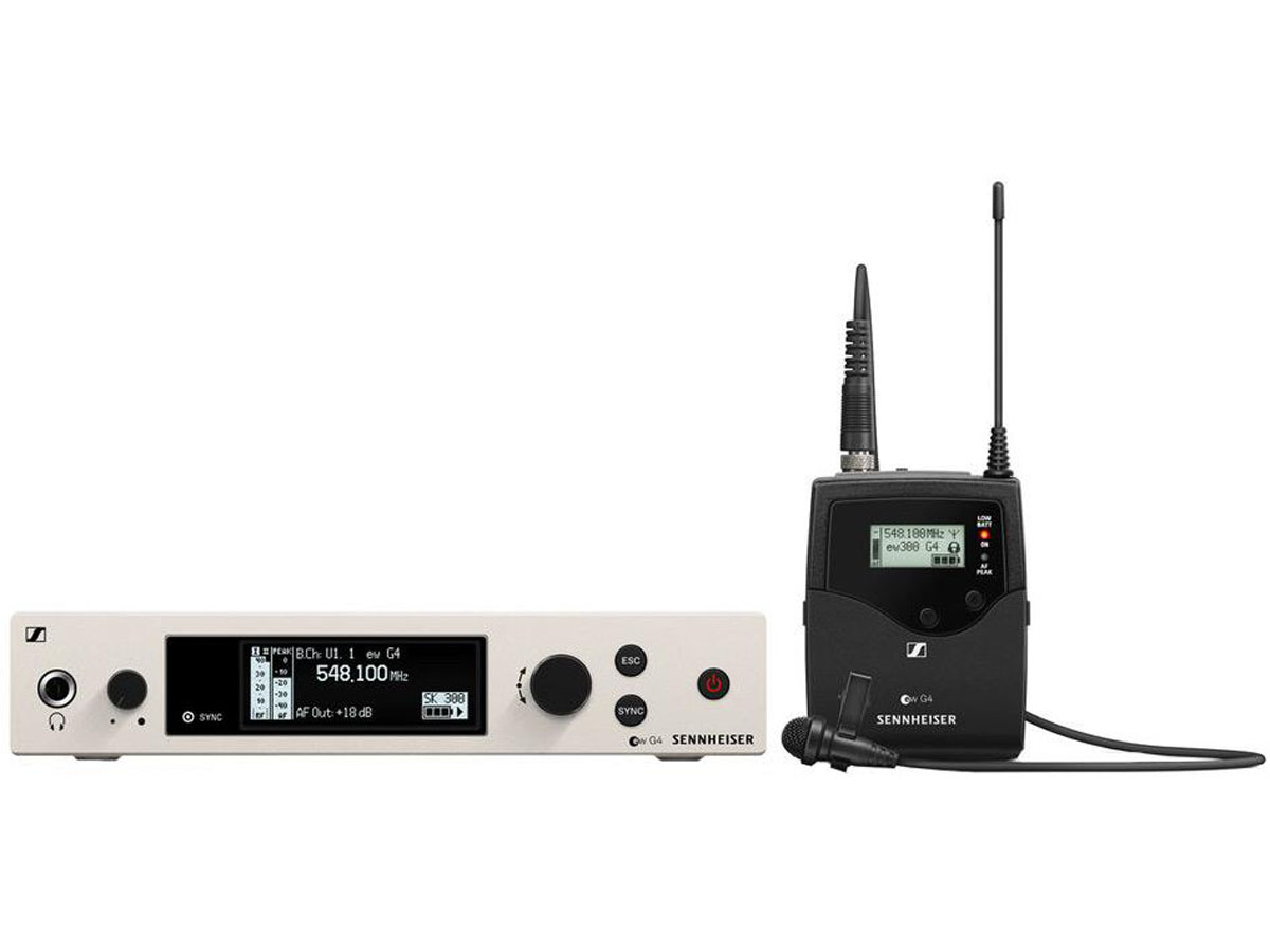 Wireless lavalier micropone set consisting of 1 SK 300 G4 RC wireless bodypack transmitter, 1 ME 2-II Lavalier, 1 em 300-500 G4 rackmount receiver, and 1 GA3 rack kit. Best choice for your business, top of the class in education. The G4 300 Series uses the power of an increased switching bandwidth of up to 88 MHz.