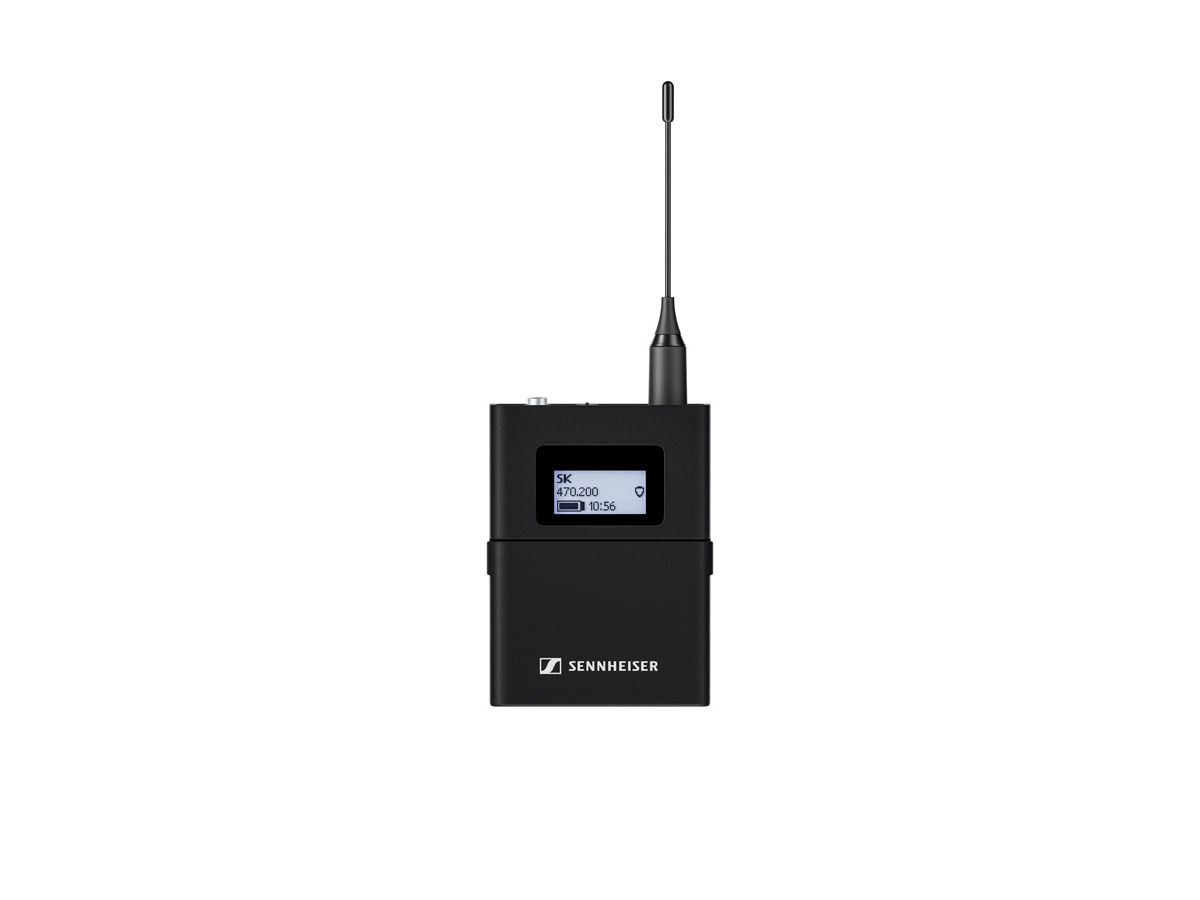 Digital wireless bodypack transmitter with 3-pin locking connector compatible with Evolution Wireless Digital systems. Rugged metal housing, up to 12 hours of runtime, persistent E-Ink display and charging contacts for in-device charging. Compatible with a wide range of Sennheiser lavalier and headset microphones.