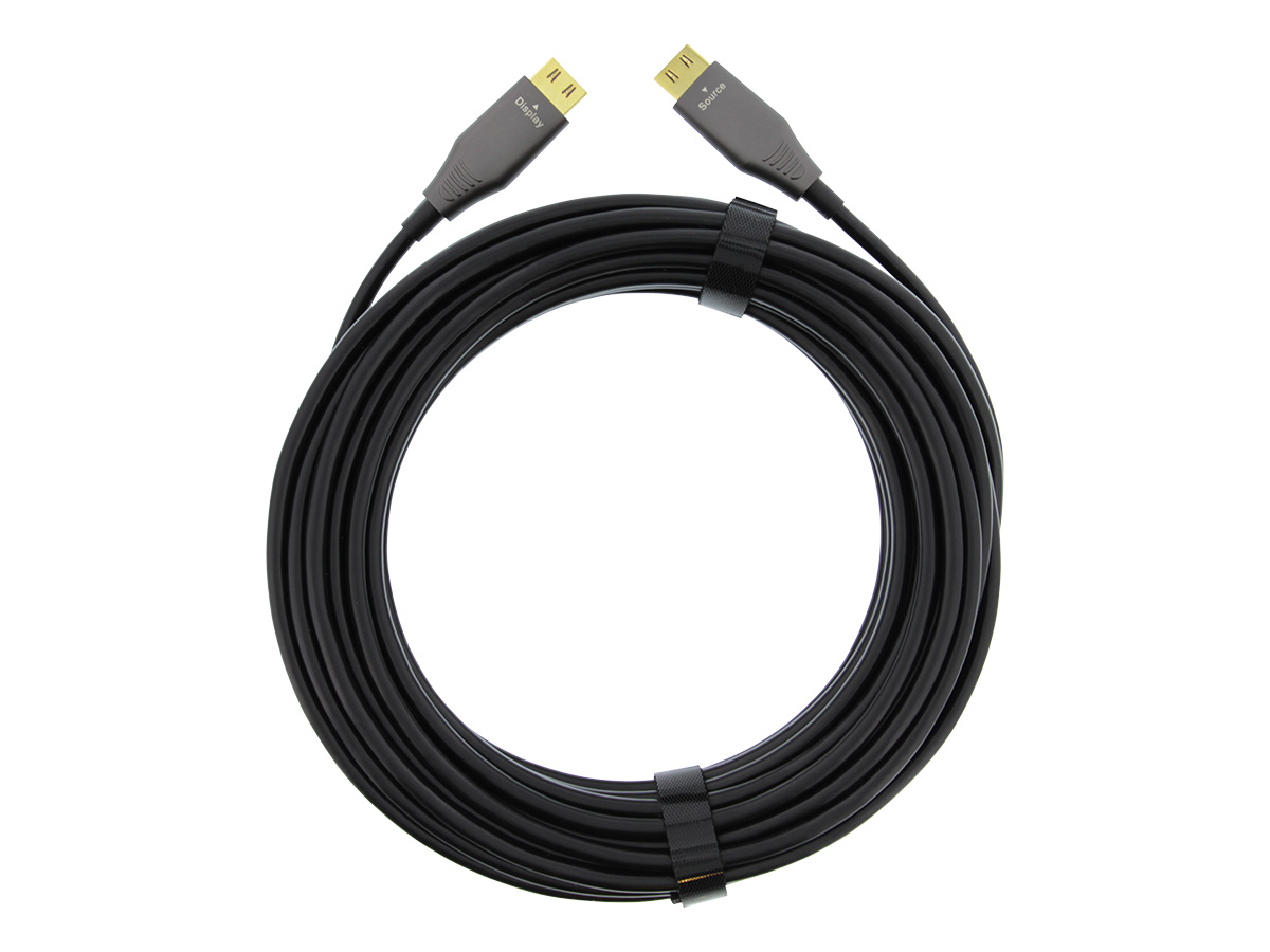 HDMI 48G AOC (Active Optical Cable), 60m | K/8K@60Hz 4:4:4 and full bandwidth of 48Gbps. Powered by the HDMI source device. No external power supply needed. Available in 15m, 30m and 60m lengths. • 4K/8K@60Hz 4:4:4 and full bandwidth of 48Gbps. • Proprietary Low Power High Bandwidth Chipset. • EMI (electromagnetic interference) protection. • Powered by the HDMI source device. No external power supply needed. • Connector locking mechanism for secure installation. • Durable and strong. • Variable Refresh Rate (VRR), Auto Low Latency Mode (ALLM) • Quick Frame Transport (QFT). • Supports Dynamic HDR and eARC.