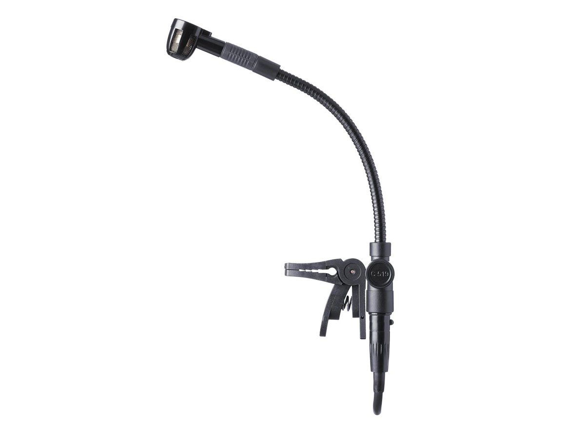 The C519 professional miniature condenser microphone clips gently onto the bell of a trumpet, saxophone, trombone, tuba, didgeridoo or any other wind instrument. Its tight cardioid polar pattern makes the C519 an ideal tool for use near monitor wedges, and its flat frequency response delivers a natural, powerful and clear sound.