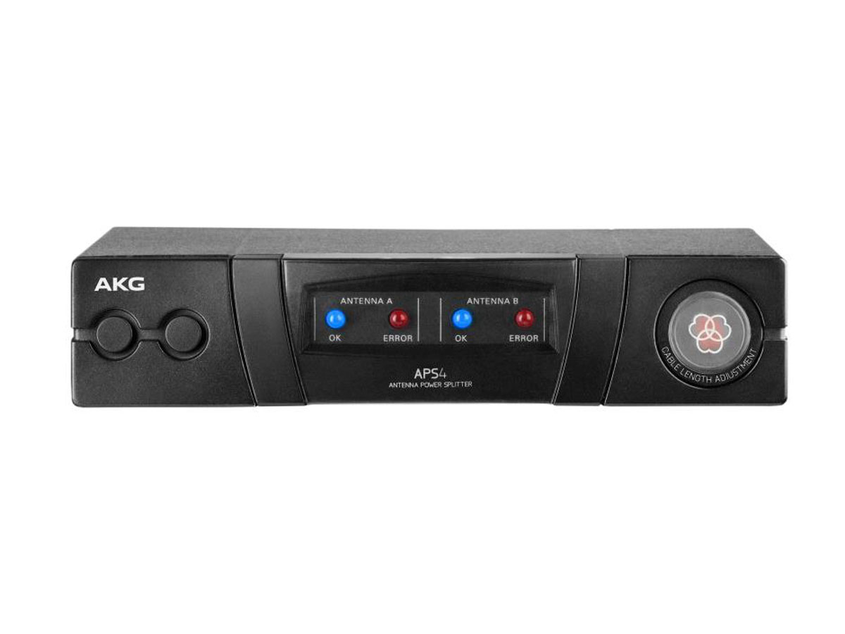 The APS4 comes in a rugged half-rack metal housing and works with all active and passive AKG antennas available on the market (RA4000 B/W, RA4000 W, SRA2 B/W and SRA2 W). The product is shipped with a rack mount kit (RMU4000), two front mount antenna cables and ten BNC cables (MKPS) for an immediate system setup. The APS4 sets are available in four different power supply variants: EU, US, U.K. or none included.