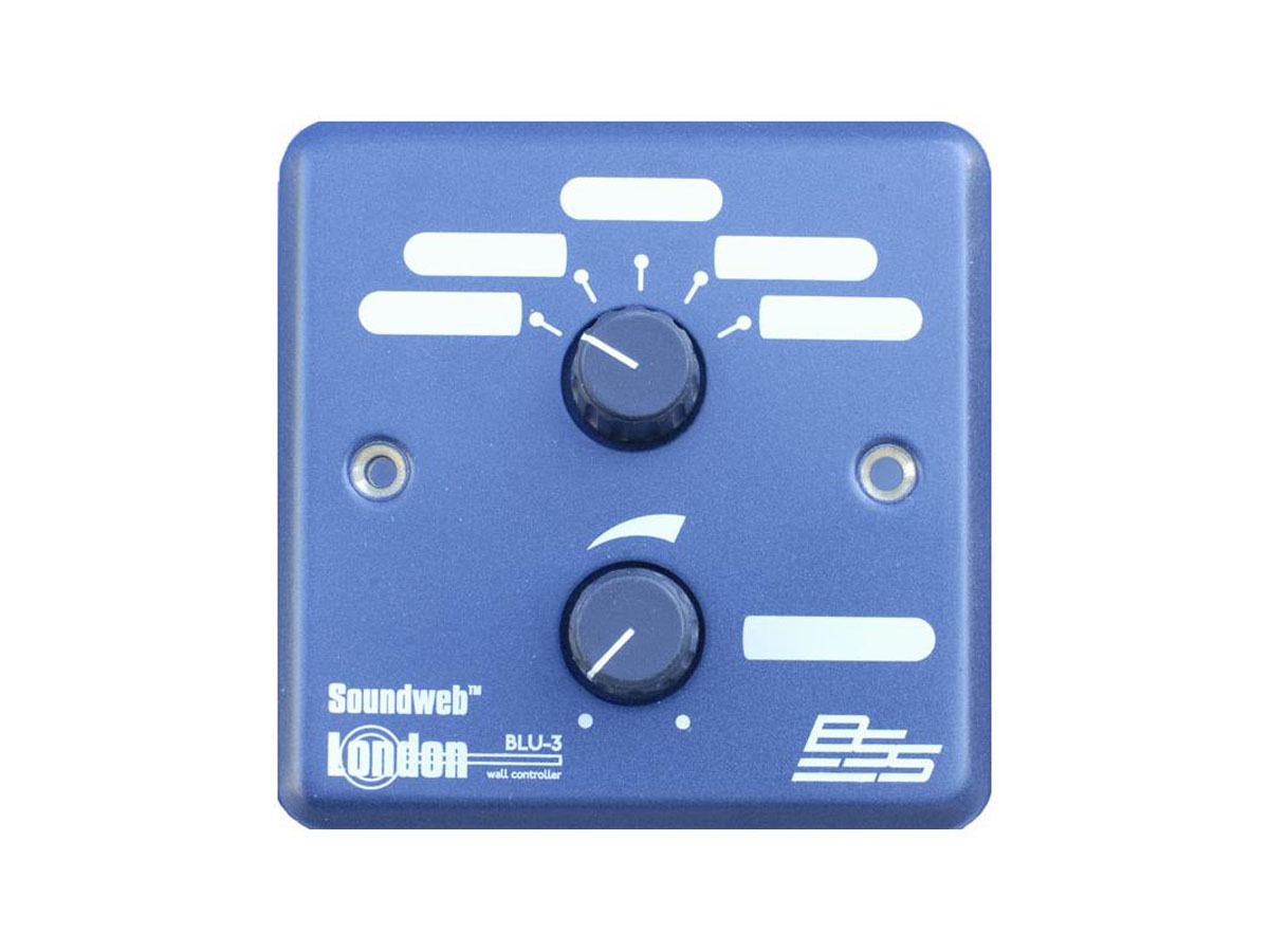 The BLU-3 wall panel is a simple controller which allows the designer to provide level control and source selection or preset recall in a simple wall-mounted panel. These controllers connect to the control ports on the rear of any Soundweb London BLU Series processor. The BLU-3 offers a rotary fader and a five-way switch. The switch could select system presets (configurations specific to times of the day for example) while the rotary control could be assigned to act as a zone volume control. The switches on both units have blank areas for marking the switch functions, either directly onto the white area, or on self-adhesive labels.