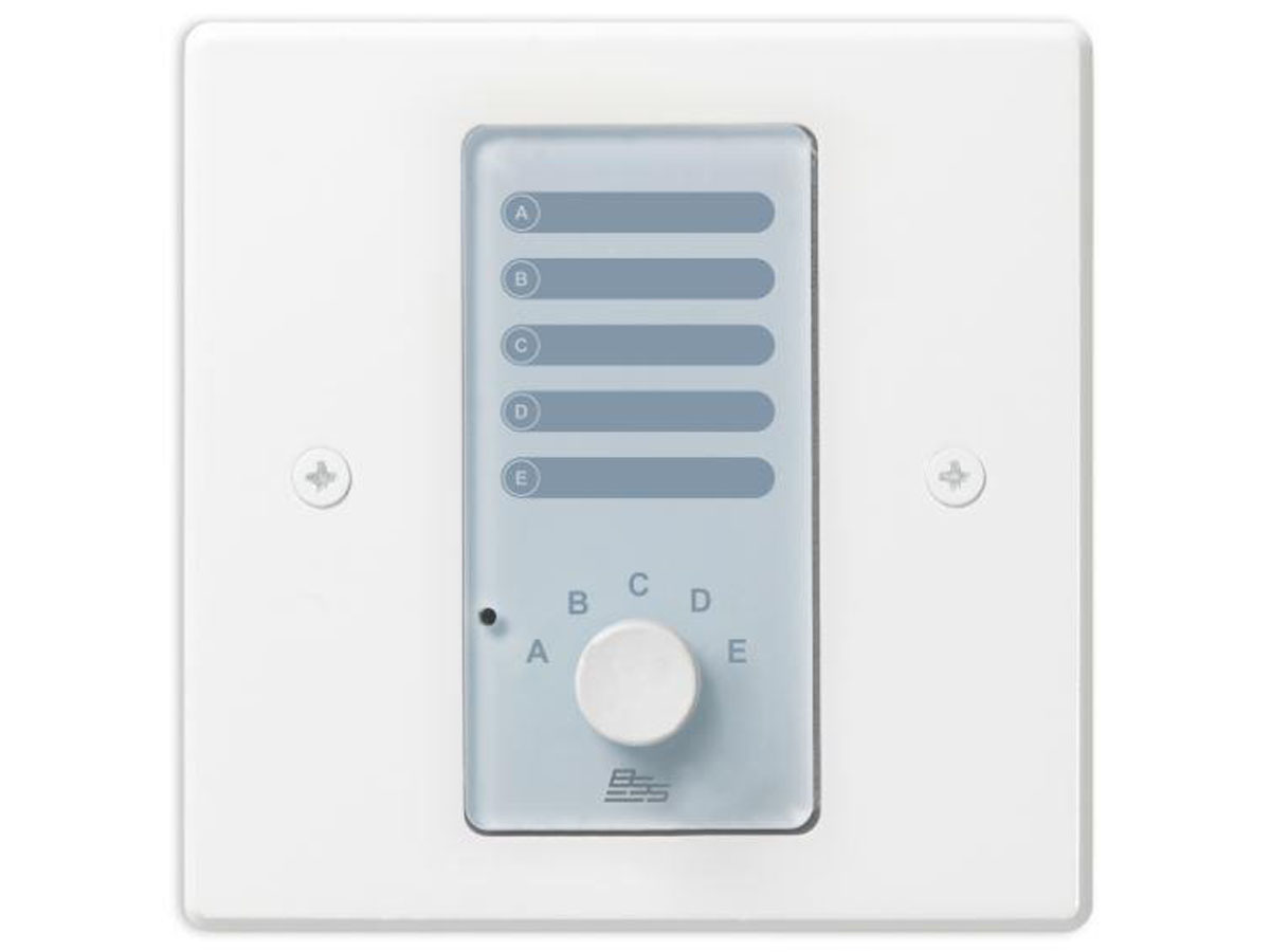 The Soundweb Contrio AC-V and AC-5S are simple analog wall controllers designed for use with BSS Audio Soundweb London devices. Both the AC-V and AC-5S are available in black or white, and in single-gang US Decora or single-gang EU form factor. The AC-V and AC-5S are designed to connect to General Purpose Inputs (GPI) (also known as “Control Inputs”) found on Soundweb London devices. Most Soundweb London devices contain 12 GPI. The Soundweb London BLU-GPX contains 36 GPI.