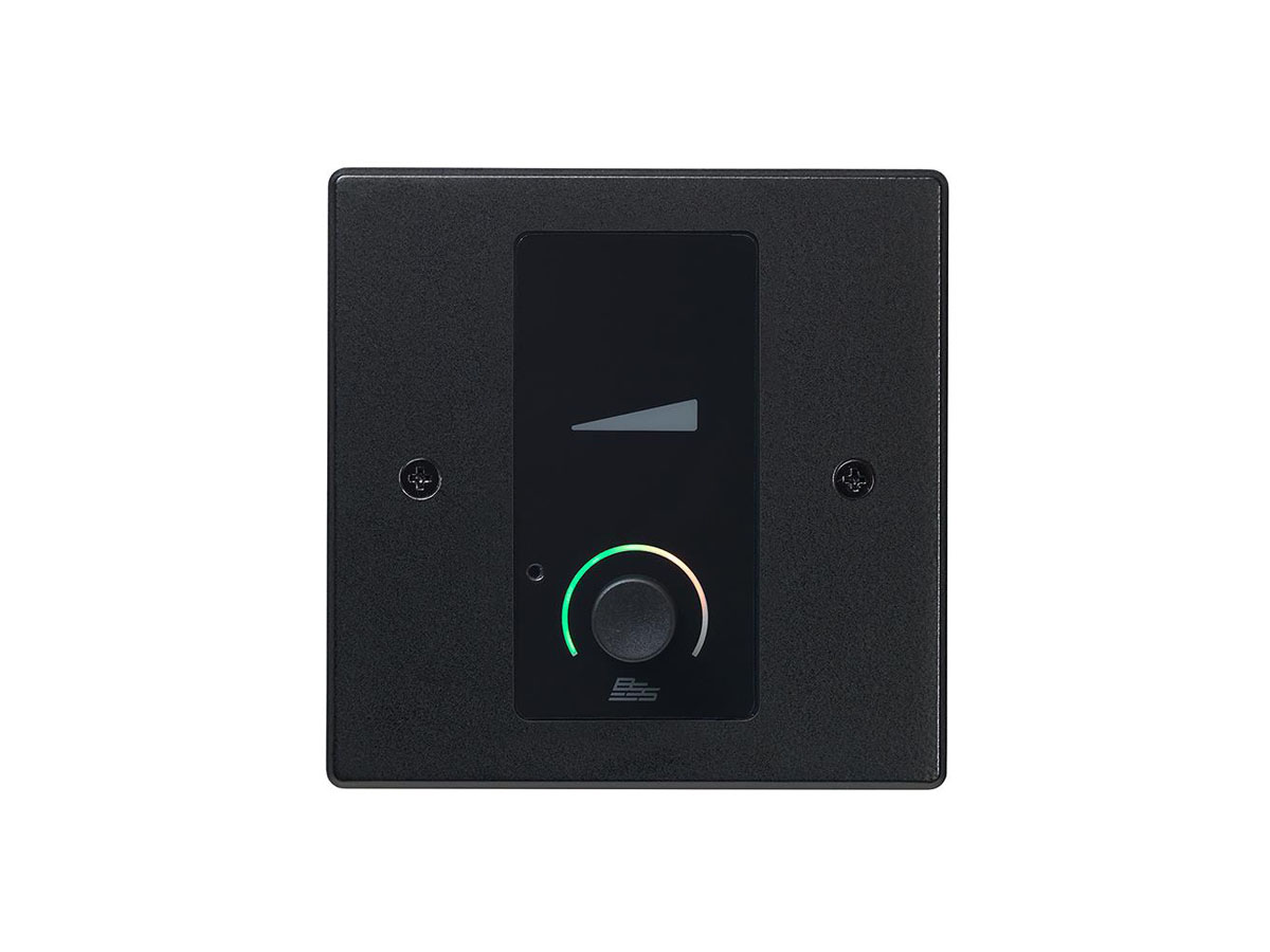 The Soundweb Contrio EC-V is an Ethernet wall controller for use in Harman HiQnet systems. The EC-V contains a single Ethernet port for configuration, control, monitoring, and power via PoE. It's configured via simple drag-and-drop operations within the software application HiQnet Audio Architect. The device contains one push/rotary encoder and one encoder ring. The encoder ring is multi-color backlit, capable of eight different colors with adjustable intensity.
