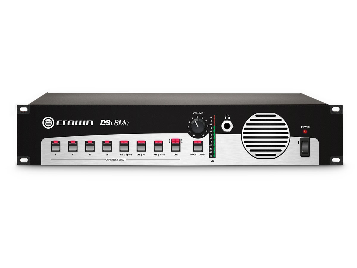 Crown's DSi 8Mn is a projection booth monitor designed to work with digital cinema systems using the Crown DSi Series amplifiers. Created to meet remote-level and remote-audio monitoring requirements, the DSi 8Mn is an integral part of Crown's cinema solutions.