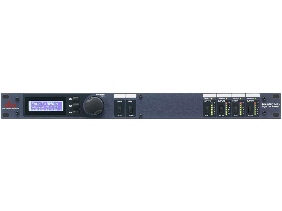 The ZonePRO 640m offers fixed I/O, pre-configured architecture, configurable insert processing and optional duplication of audio channels to another ZonePRO device via a link bus. The 640m features a total of six inputs and four outputs. Inputs include four balanced mic/line switchable terminal block inputs and two mono-summed pairs of unbalanced RCA inputs.