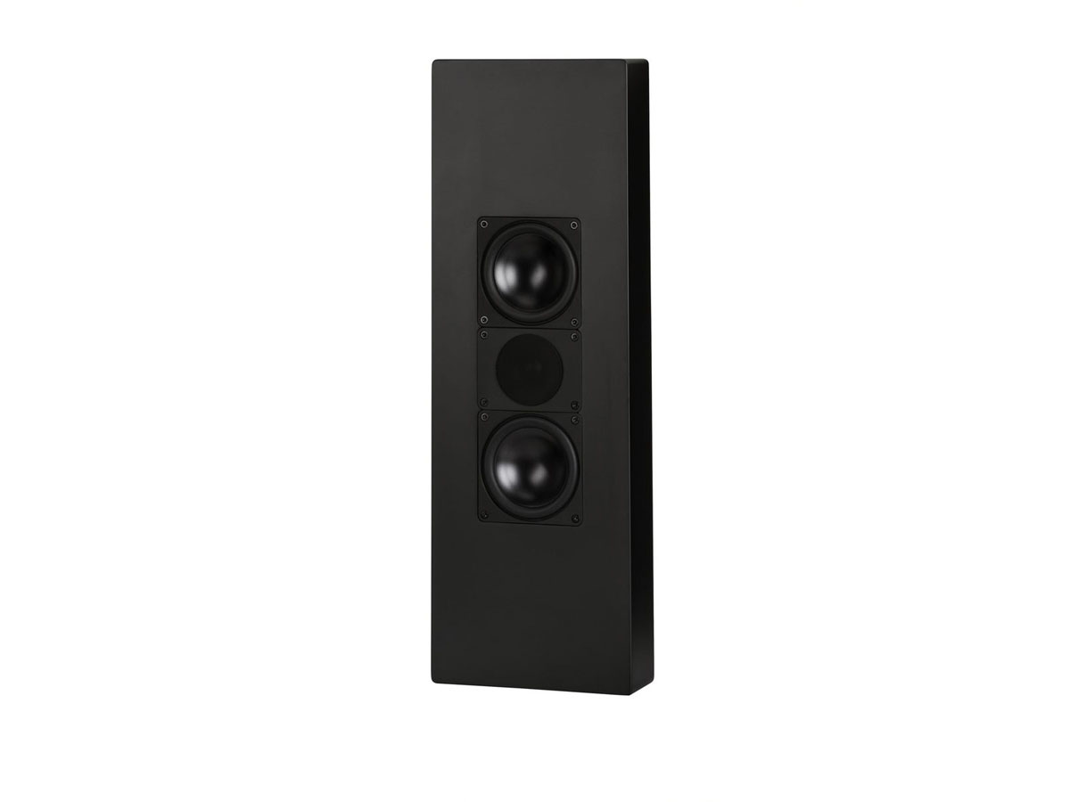 Two 5-inch x 2.25 inch racetrack woofers provide maximum radiating area in a column form factor. The tweeter is located at top of array for less obstructed coverage of the listening space and is aimed at a down angle, allowing down-tilted coverage aim, even with the cabinet flat to the wall. The shallow cabinet depth of 3.7 inches (93 mm) qualifies for ADA (Americans with Disabilities Act) projects when installed with the back of the cabinet flush to the wall.