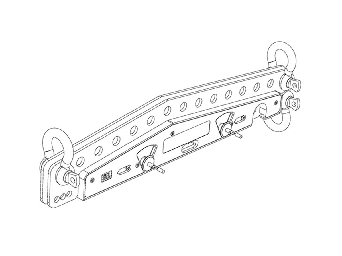 The VTX A8 AF EB extension bar was designed to operate in conjunction with the VTX A8 AF array frame to facilitate either single-point, two-point front-to-back or side-by-side suspension methods. The extension bar is compatible with 5/8-inch shackles and can be stored above the array frame during transportation. The extension bar can extend to the front or the rear of the frame to accommodate both up-tilt and down-tilt aiming options. Three connection points are available for attaching the extension bar to the array frame, allowing for precise control of shackle positioning for single-point applications.