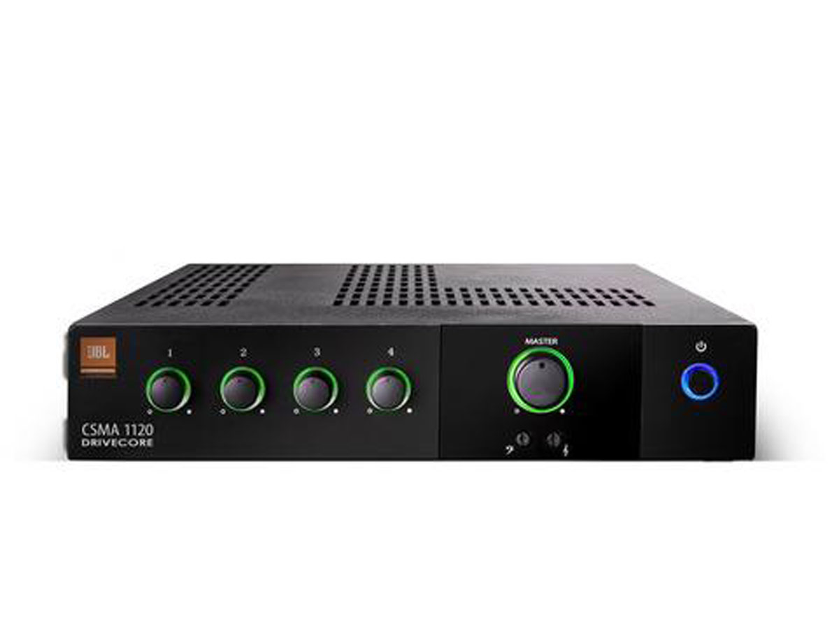 The JBL® CSMA series of Mixer-Amplifiers are a professional tool with a sleek industrial look that is designed and built for commercial sound applications. Utilizing Crown’s DriveCore technology enables significantly reduced size and weight – all mixer/amps are highly efficient, fanless and just 1U rack space high. There are both single channel and two channel models with four or eight mixer channels, respectively.