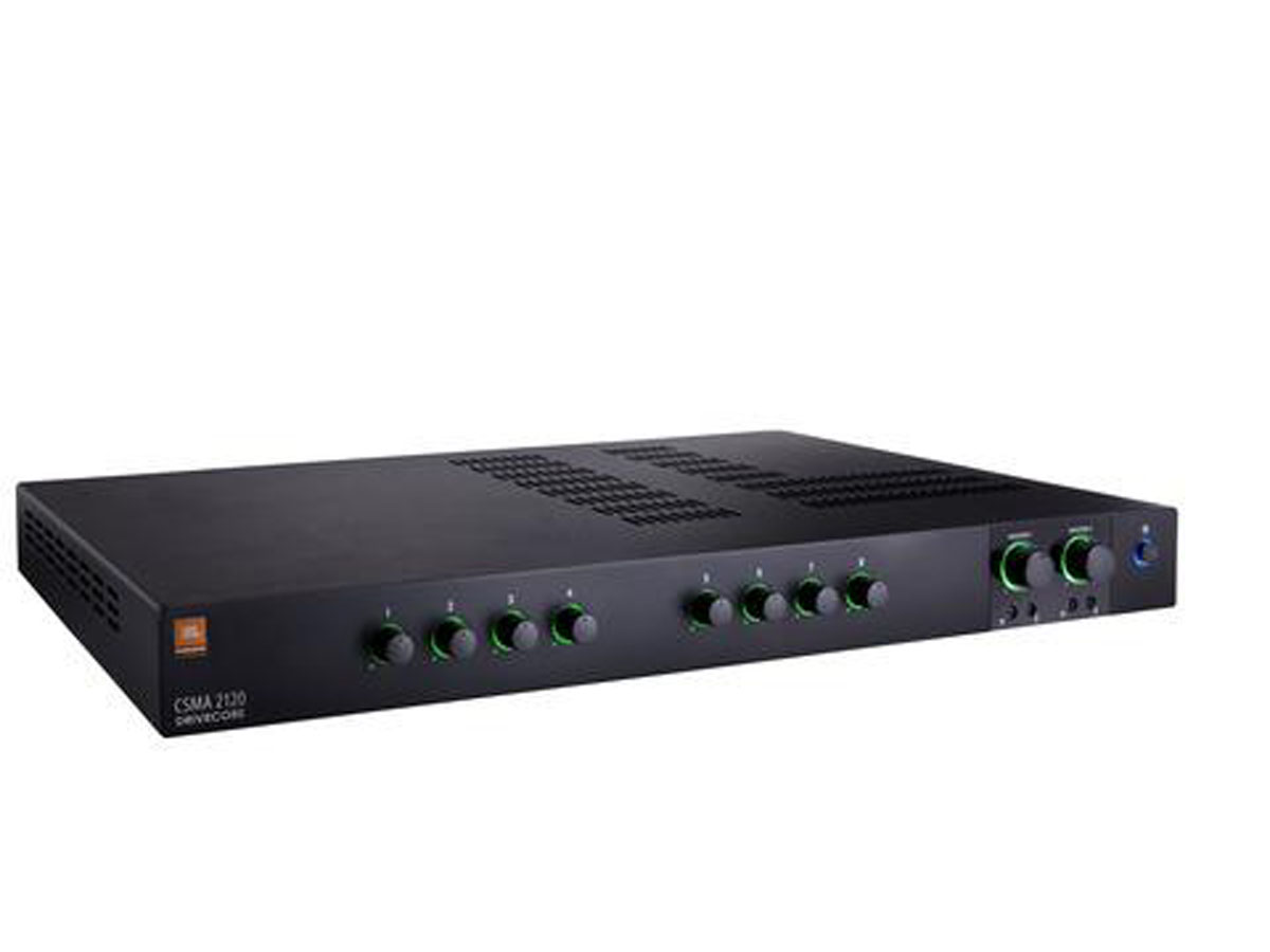 The amplifier can drive 8 ohm and 4 ohm loads and can be used with 70V and 100V distributed audio systems without the need for a separate transformer. In addition to balanced mic/line inputs, unbalanced RCA inputs and speaker connections, all units include RJ45 connectors for use with JBL CSR-V in-wall volume controls. All models feature a universal power supply which enables the ability to accept AC voltages from 100 to 240 VAC, 50/60Hz.