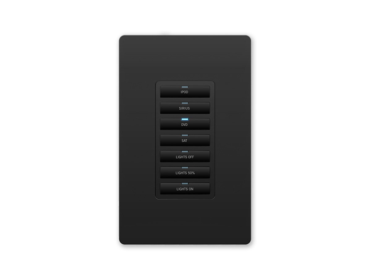 The HPX-U400-R-MET-7E module is a Metreau 7-Button Ethernet Keypad in a ramped carrier that allows it to be installed into the HydraPort® chassis at an angle to improve usability.