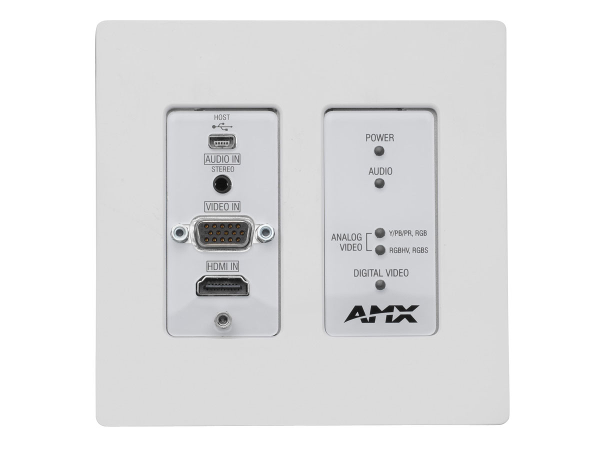 - Wallplate Form Factor – Fits conveniently into a 2-gang US back box for easy installation in a wall, floor, or lectern. It uses standard decor-style faceplates (not included). It is available in black or white and has an industrial design that blends well into commercial installations.
