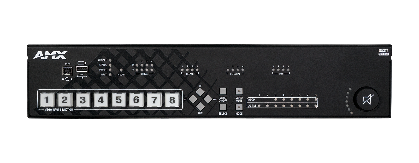 - Flexible Interface Options – Interface options include integrated web GUI, front control panel, On Screen Menu Setup and is a Native NetLinx device which can be controlled via native NetLinx ICSP commands. Full feedback and notifications are provided for NetLinx integration.