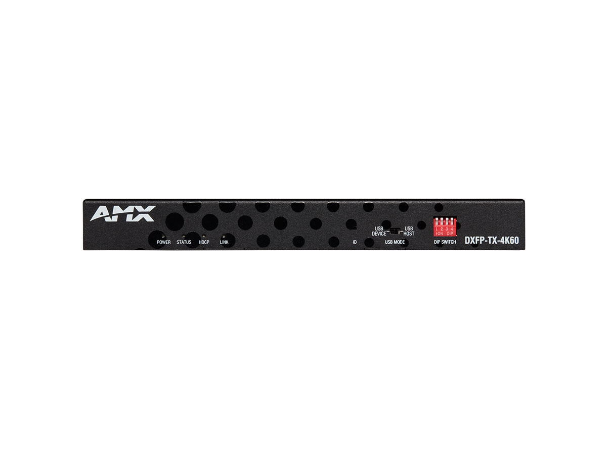 This module transmits audio, video, control, USB 2.0, and Ethernet over duplex fiber up to 300 meters to a DXLink 4K60 Fiber receiver. It includes a Multi-Mode Duplex (MMD) SFP, which can be replaced with a Single-Mode Duplex (SMD) SFP if needed.