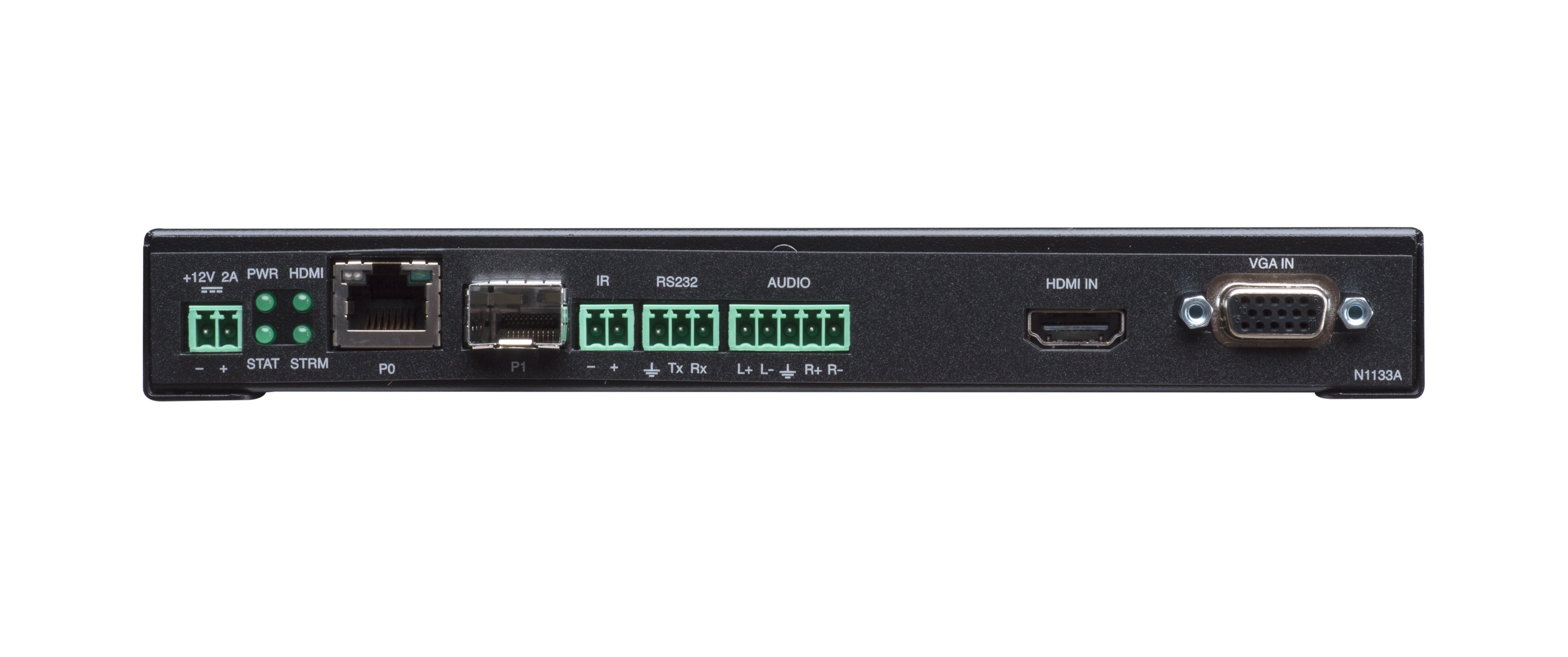 The new NMX-ENC-N1133A model features improved digital pixel reproduction and cut the already imperceptible latency in half. Packetized video streams not only remain visually lossless throughout distribution, they also arrive instantly. It has separate HDMI and VGA/RGB inputs, supports PoE, AES67, and has a separate SFP port. The SFP fiber path allows visually lossless video to be routed on a fiber-only network and extend signals beyond the reach of category cable. Added USB connectivity will enable users to extend USB over IP for touch-enabled and KVM applications.