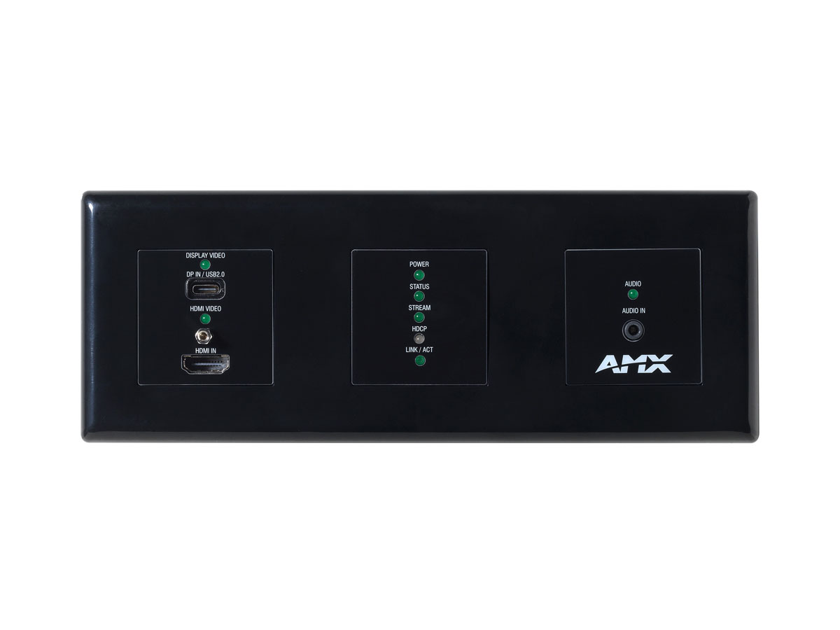 Additional features include transport of full-bandwidth USB 2.0 signals, video preview images viewable from the built-in web interface or from a touch panel, and enhanced support for high-security networks. The wallplate includes an HDMI input and a USB-C input which supports both video and USB 2.0 on a single connector.