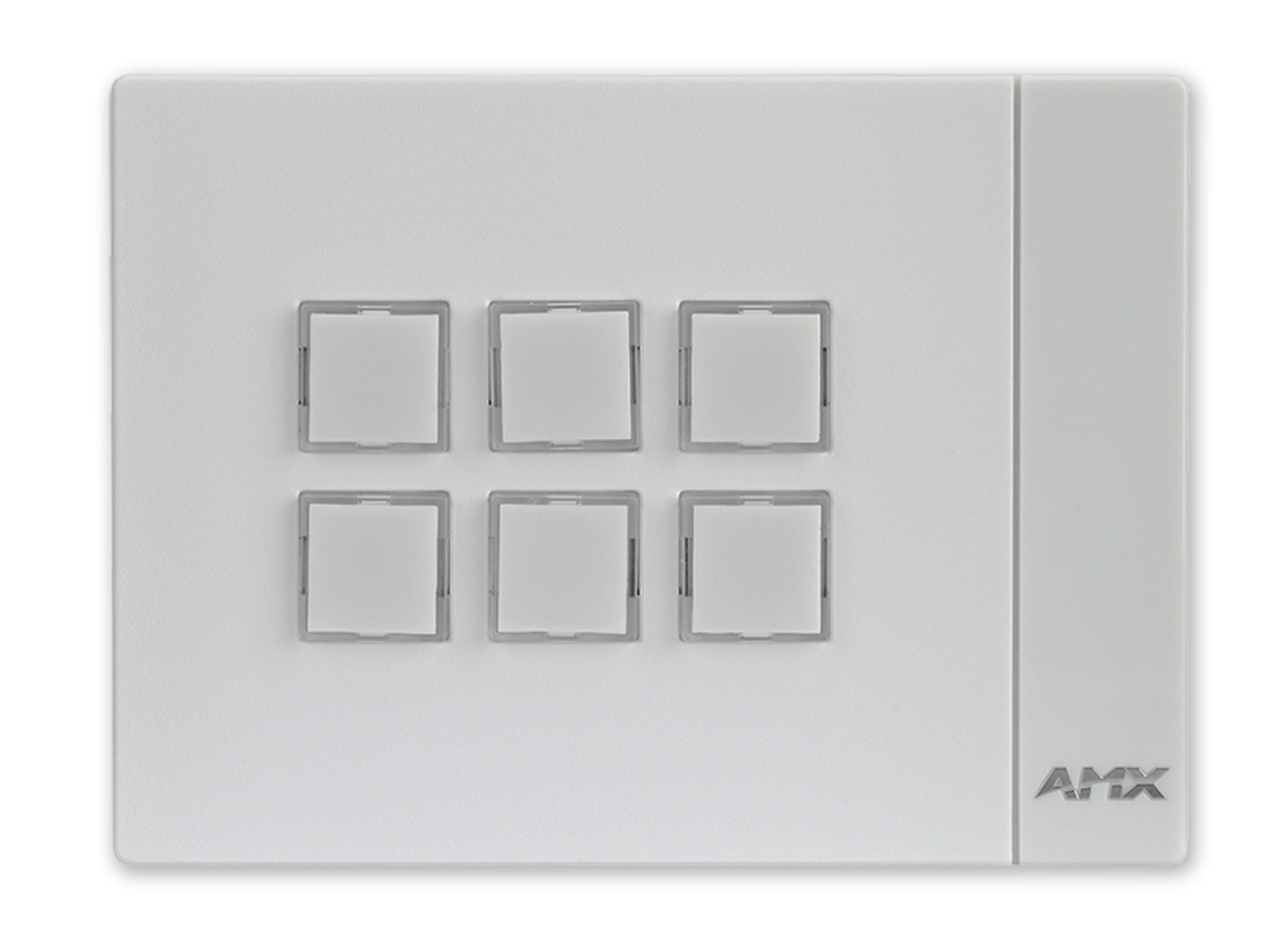 Massio 6-Button Ethernet Keypad, Landscape, White - Fits into standard 1 gang US, UK, or EU back box. Use in conjunction with NetLinx control or as a secondary UI with Massio ControlPads