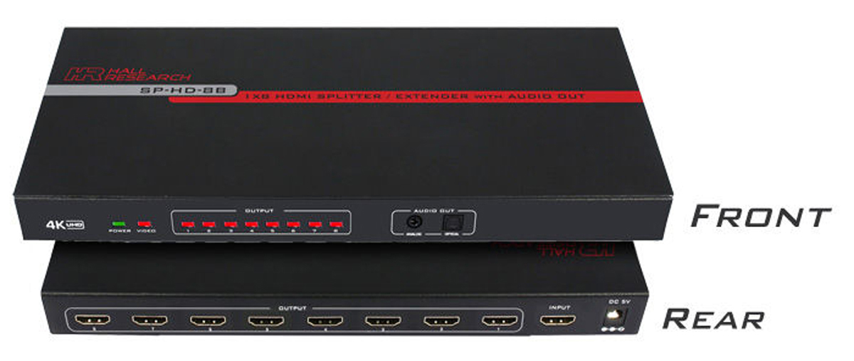 Lossless Ultra HD 4K distribution to eight (8) UHD or HD outputsSupports PC & HDTV resolutions up to 4K x 2K@30Hz (4:4:4),1080P@120Hz,and 1080P 3D@60HzSupports 30/36/48 bits per pixelFull 3D video support including frame packing up to a 297MHz TMDS clockLED status indicators for power, source signal, and 8 output connectionsAnalog and digital audio extraction via L/R and SPDIF outputs