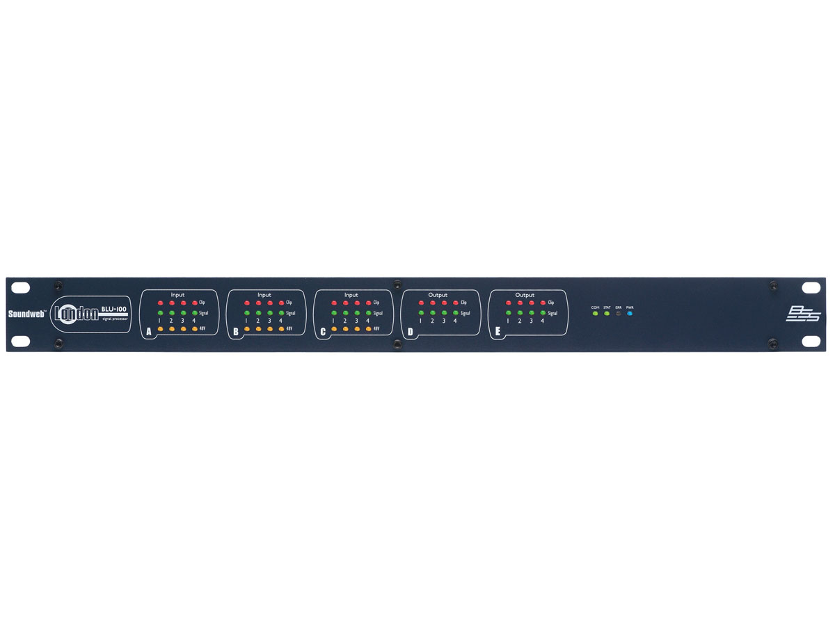 The BLU-100 has open architecture which is fully configurable through HiQnet™ Audio Architect. A rich palette of processing and logic objects and a “drag and drop” method of configuration provide a simple and familiar design environment.This processor features a low latency, fault tolerant digital audio bus of 48 channels which uses standard Category 5e cabling giving a distance of 100m between compatible devices. Fiber media converters can be used to increase the distance between devices to over 40km.