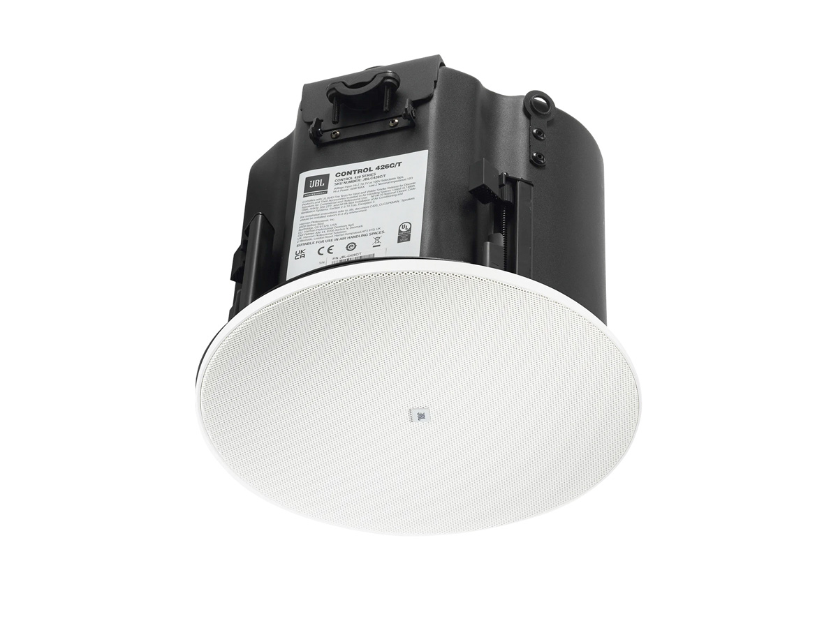 The JBL Control 426C/T is a two-way coaxial ceiling loudspeaker, featuring a 6.5” woofer and integrated enclosure that is ideal for installation in most ceiling plenum spaces. Integrated CRBI™ technology provides 110° of consistent, full, rich sound to the listening area. A full-face magnetic grille blends seamlessly with modern decors and optional black and square grilles are available. Mechanical improvements include redesigned terminal covers with top and side cable entry ports and an extremely reliable new dogear design that works with a wide range of ceiling thicknesses. The JBL Control 426C/T includes a transformer to support both 70V/100V and low impedance applications.